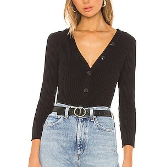 ENZA COSTA Military Cotton Rib Long Sleeve Henley Top in Black