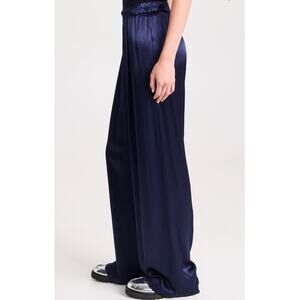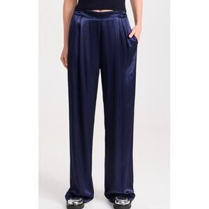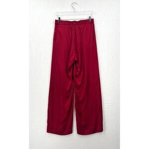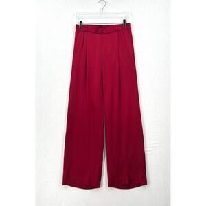 ENZA COSTA Pleated Satin Pants Womens Medium Crimson Red Pull On Wide Leg NEW