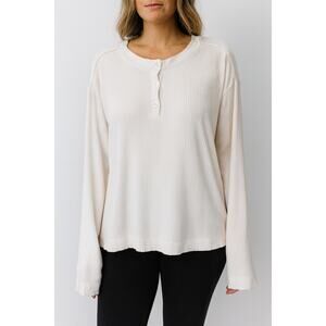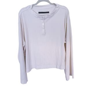 Enza Costa Rib Henley Long Sleeve Top | Cream | Size XL | Luxe Basic, Quiet Luxury