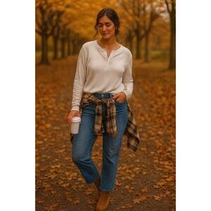 ENZA COSTA Ribbed Henley Long Sleeve Blouse XL Cream Quiet Luxury Fall Layer