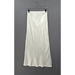 ENZA COSTA Satin Bias Cut Slip Maxi Skirt Womens Medium White Cloud Pull On NEW