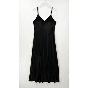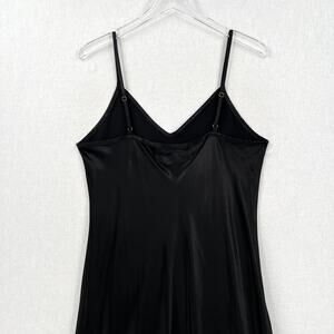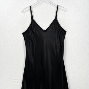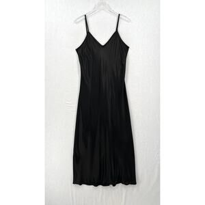 ENZA COSTA Satin Bias Slip Dress Womens XL Black Maxi V-neck Spaghetti Strap