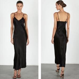 ENZA COSTA Satin Bias Slip Dress Womens Extra Large Black Strappy Maxi V-neck