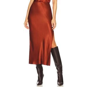 ENZA COSTA Satin Bias Slip Skirt Women XS Umber Rust Maxi Side Slit Pull On NEW