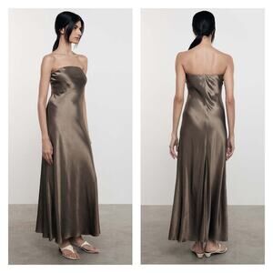 ENZA COSTA Strapless Satin Bias Dress Womens Medium Teal Aqua Blue Maxi Pull On