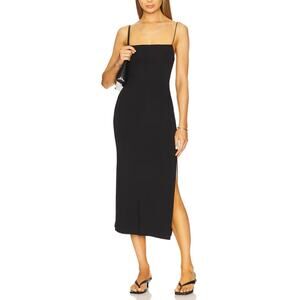 ENZA COSTA Strappy Side Slit Dress Womens Medium Black Midi Spaghetti Strap NEW