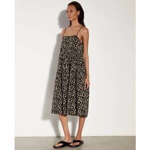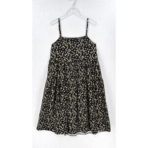 ENZA COSTA Tiered Spaghetti strap Dress Womens Small Black Floral Print Cotton