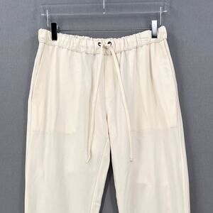 ENZA COSTA Twill Easy Pants Womens Medium Cream Mid Rise Drawstring Pull On NEW