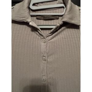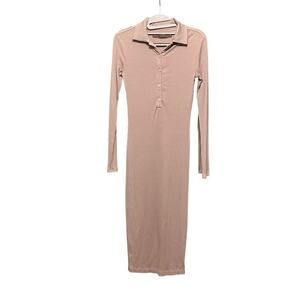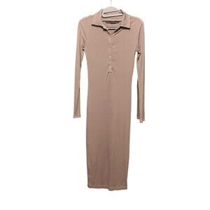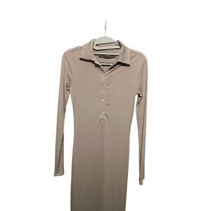 ENZA COSTA X REVOLVE Long Sleeve Henley Midi Dress •S• Sweater Cardigan Taupe