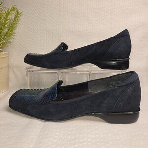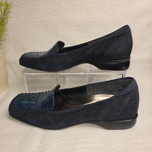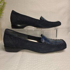 ENZO ANDIOLINI BLUE LEATHER SQUARE TOE LOAFER SNAKE SKIN WOMENS SIZE 6.5