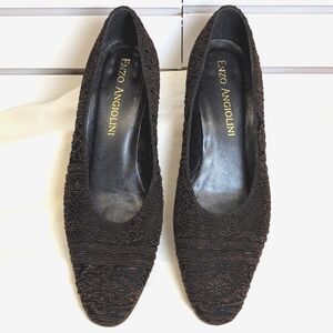 The Enzo Angiolini Women's Brow nTextured Block Heels Pumps in size 10M US are stylish and elegant shoes perfect for various occasions such as parties, formal events, or workwear. These pumps feature a closed toe design with a slip-on closure, a 1 1/4 " suede block heel, and a textured upper with paisley-esque embossed accents. These shoes offer moderate cushioning and arch support for comfort and performance. The classic designer style, combined with a classic pattern, makes these pumps a versatile and timeless addition to any woman's shoe collection.