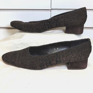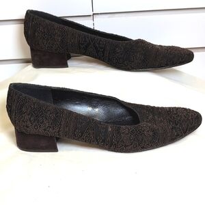 ENZO ANGIOLINI Brown Textured Pump With Suede Block Heels Pumps Women 10M US EUC