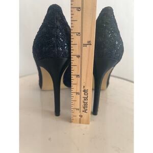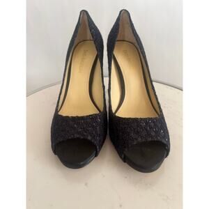 ENZO ANGIOLINI PEEP TOE BLACK SATIN GLITTER FABRIC STILETTO HEELS SIZE 8M