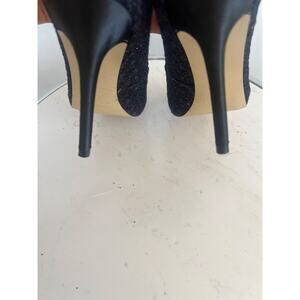 ENZO ANGIOLINI PEEP TOE BLACK SATIN GLITTER FABRIC STILETTO HEELS