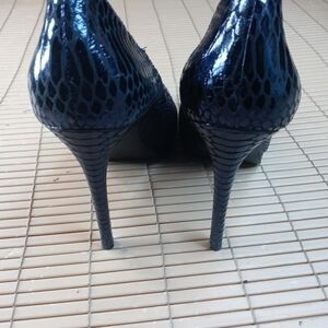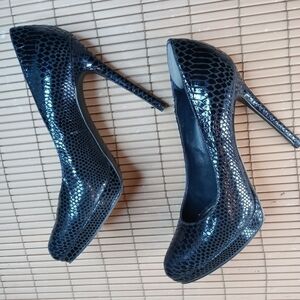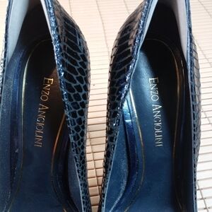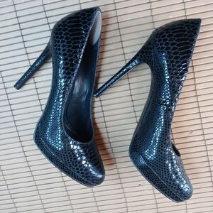 ENZO ANGIOLINI STILLETOS black LEATHER SHOES Women Size 8M lizzard print. TUpem