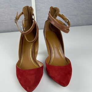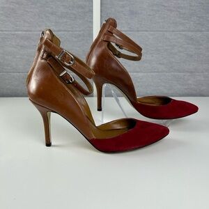 ENZO ANGIOLINI Women’s Eacelton Suede/Leather Heels Color: Brown/Red Size: 7.5