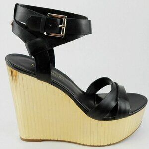 ENZO ANGIOLINI ZAMAZ Black Leather Designer Sandals Wedges
