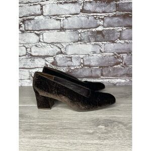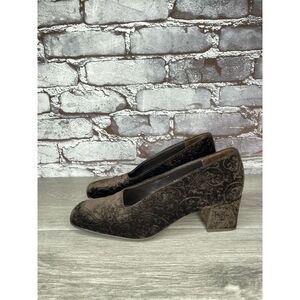 ENZO ANGIOLINI Brown Textured Floral Velvet Block Heels Pumps Women 6M US/36.5EU