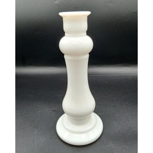 EO Brody Co White Milk Glass Candlestick Flower Bud Vase M-118 Vintage 8 Inch