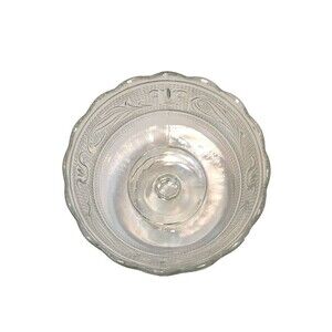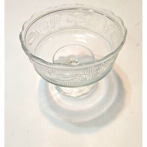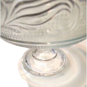 EO Brody Glass Co Clear Pedestal Bowl Cleveland Ohio Dots Floral Pressed Glass, Scalloped Rim and Base, Beautiful Enough to Display and Sturdy Enough to Use for Service, Very Good Condition, 5-1/2" Tall X 6-1/2" Dia Rim.