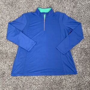 EP NY Long Sleeve Zip Polo w/ Ruffle Trim - BlueBelle