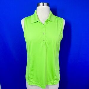 Excellent, perfect, condition. Bright green collared, sleeveless golf shirt. Size Medium. Approx measurements in inches when laid flat: chest 18 across pit to pit, full length 23.