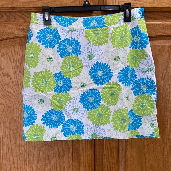 Vibrant floral skirt by EP Pro. Features blue and green flowers. Perfect for a fresh, stylish look.
