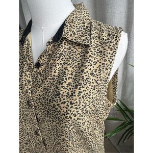 EP Pro Golf 100% Silk Leopard Button Up Sleeveless Top Mob Wife Medium