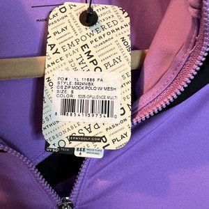 EP Pro NY Cap Sleeve Mesh Overlay Contrast Trim Zip Mock Women's Golf Polo
