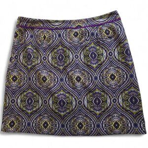 E.P. Pro Size 12 Purple & Gold Paisley Skort Side Zip Golf Tennis Skirt Pockets