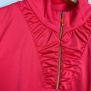 EP Pro Sleeveless Ruffle Golf Tennis Athletic Top Pink Ruffles Gold Zipper M