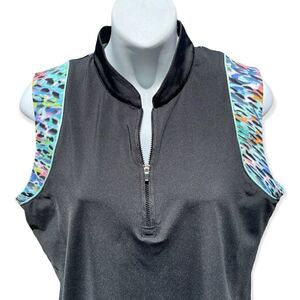 Golf Tinnes black, pink, red, green blue wicking top with center front zipper.