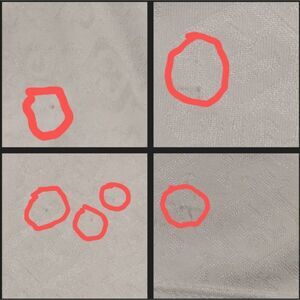 There are a few places that have little pulls in the shirt (marked in red pen in the pictures).