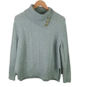 EP SZ L Mohair Wool Blend Cable Knit Sweater Soft Green Gold Buttons