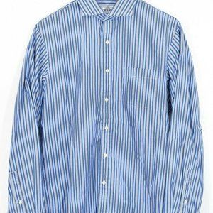 EPAULET New York Multi Stripe Button Shirt Blue White Cotton Cutaway Collar US L