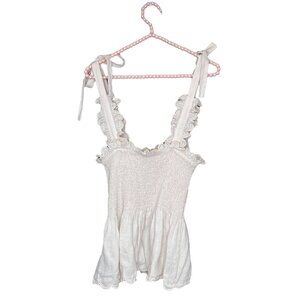 EPHEMERA US 6 UK 10 Blush Ruffle Scalloped Hem Linen Embroidered Bow Tie Top