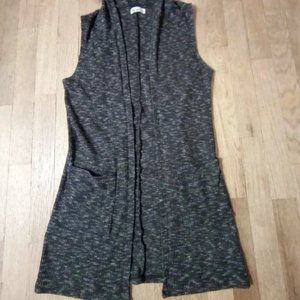 EPIC THREADS - Sleeveless Long Hooded Cardigan in Black Variegated Patte…