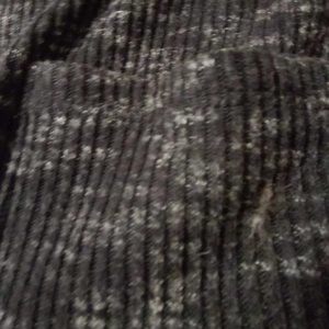 Soft, has pockets. Micro ribbed. Open. Length go to just above the knee.