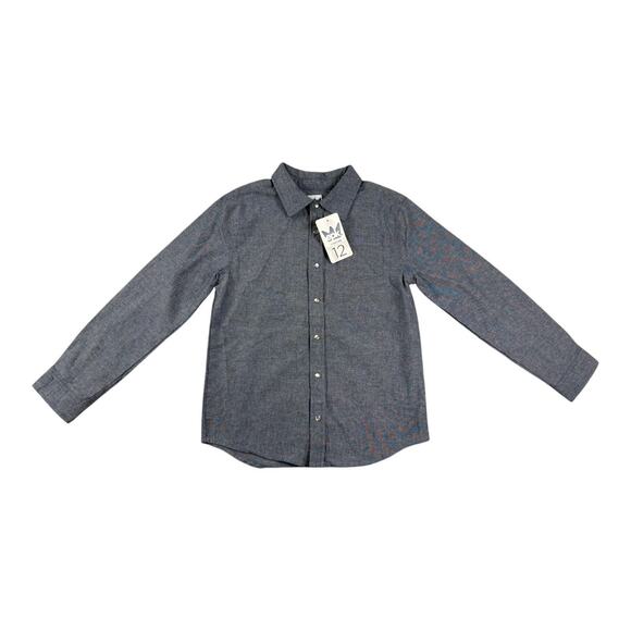 This EPK boys’ Pearl Snap long sleeve button-up shirt in size 12 is perfect for dressy or casual occasions. The gray chambray fabric gives it a stylish, modern look, and it’s made from 100% cotton for breathability and comfort. With a classic button-down collar and buttoned cuffs, this versatile shirt is a great addition to any young man’s wardrobe. New with tags!