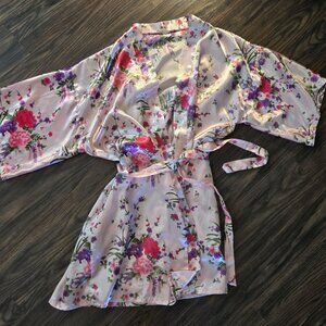 EPLAZA Floral Satin Kimono Short Robe NWOT/SIZE S
