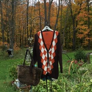 @smartell1🌅EXTREMELY “UP YOUR ALLEY” ARGYLE?? 👠🌹Hope you READ THE COMPLETE MESSAGE ON SIZING OF CARDIGAN,😍PLZ DO NOT GET OFFENDED😋IT FITS MUCH SMALLER THAN 2X🌅🌅Cyn