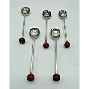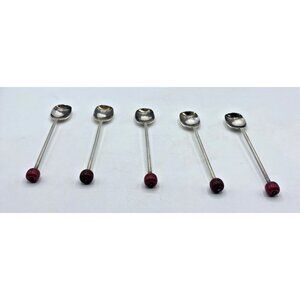 EPNS Cherry Julep Muddler Stirrers Spoons Set of 5 Made in England Barware