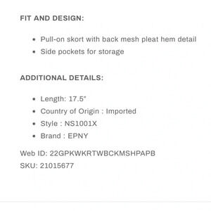 EPNY GOLF XXL blue pull on moisture wicking golf skort with back mesh pleat