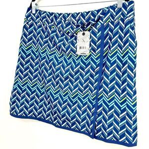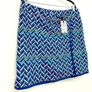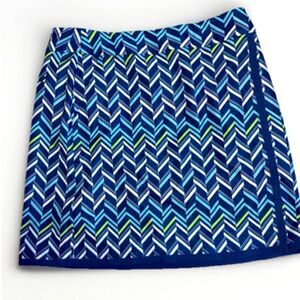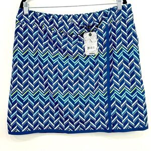 EP PRO NY Blue White Broken Pleat Chevron Print Skort in Inky Multi NEW