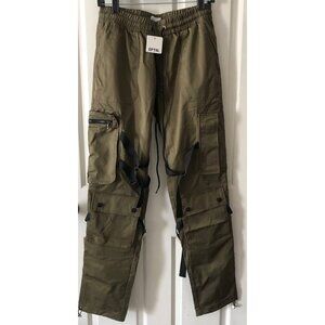 EPTM Men's Cargo Pants Olive Green Straps & Pockets Size Small 30W