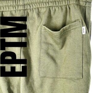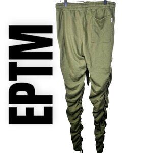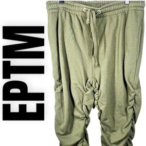 EPTM Olive Green Drawstring Wrinkle Ruched Leg Jogger Sweatpants, Size Large