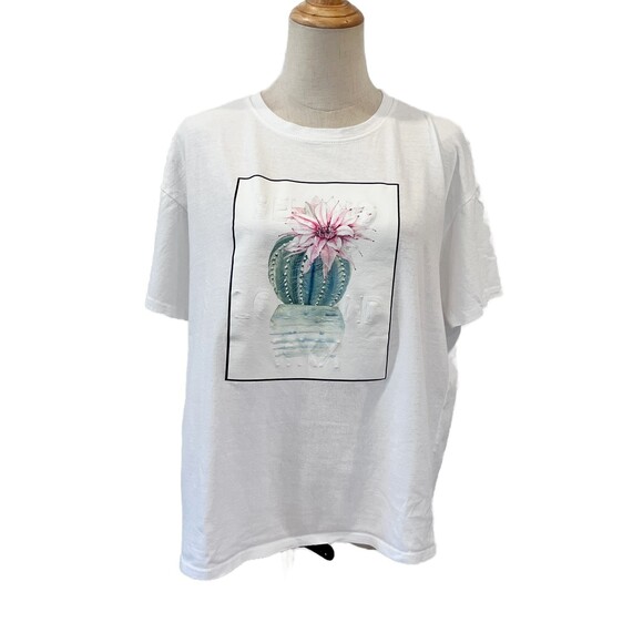 EPlus White T-Shirt Cactus Short Sleeves Desert