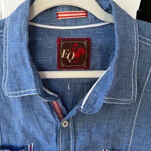 EQ Rooster Men’s 2X Short Sleeve Button Down Linen Top Lightweight Cool Blue