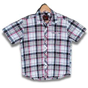 EQ Rooster by Equilibrio Men's Md/Lg Grey and Red Check Short Sleeve Button-down