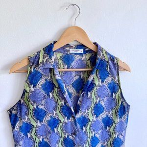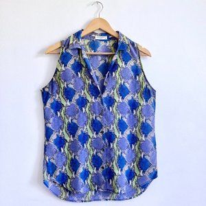 EQUIPMENT Adalyn Button Down Tank Shirt Psychedelic Python Print Snake Skin S